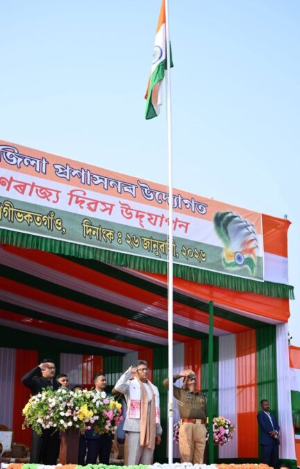 ডিব্ৰুগড়ত অনিষ্ঠিত হোৱা ৭৭ সংখ্যক গণৰাজ্য দিৱসৰ কাৰ্যসূচীত অংশগ্ৰহণ কৰি ৰষ্ট্ৰীয় পতাকা উন্মোচন কৰে ৰাজ্যৰ মুখ্যমন্ত্ৰী ডঃ হিমন্ত বিশ্ব শৰ্মাই। ডিব্ৰুগড়ত গণৰাজ্য দিৱসৰ পাতাকা উন্মোচন কৰি চৰকাৰৰ উন্নয়নমূলক কামৰ কিছু খতিয়ান দাঙি ধৰে ভাষণ প্ৰসংগত (77th Republic Day Assam)।